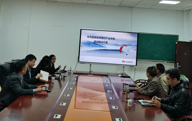 会上,浙江华为通信技术有限公司陈曦汇报了产业学院的建设背景和华为信息技术现代产业学院建设方案,包括运行机制、建设框架、保障机制。院长刘志芳就合作中的相关问题进行了咨询,包括师资问题、实习实训问题、就业问题、费用问题、培养方案问题等。参会人员结合专业特点,就专业共建、联合培养模式、师资培训等内容进行了交流。