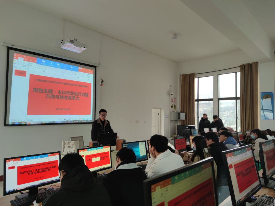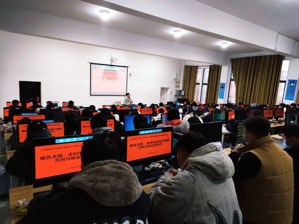 12月26日上午8:30分,计科系在智学楼四楼6实训室开展了主题为“本科毕业设计选题方向与就业竞争力”的讲座。会议由专业负责人石云老师主持,系上教师韦旭勤和管彦允,以及该系2023届125名毕业生参加了讲座。