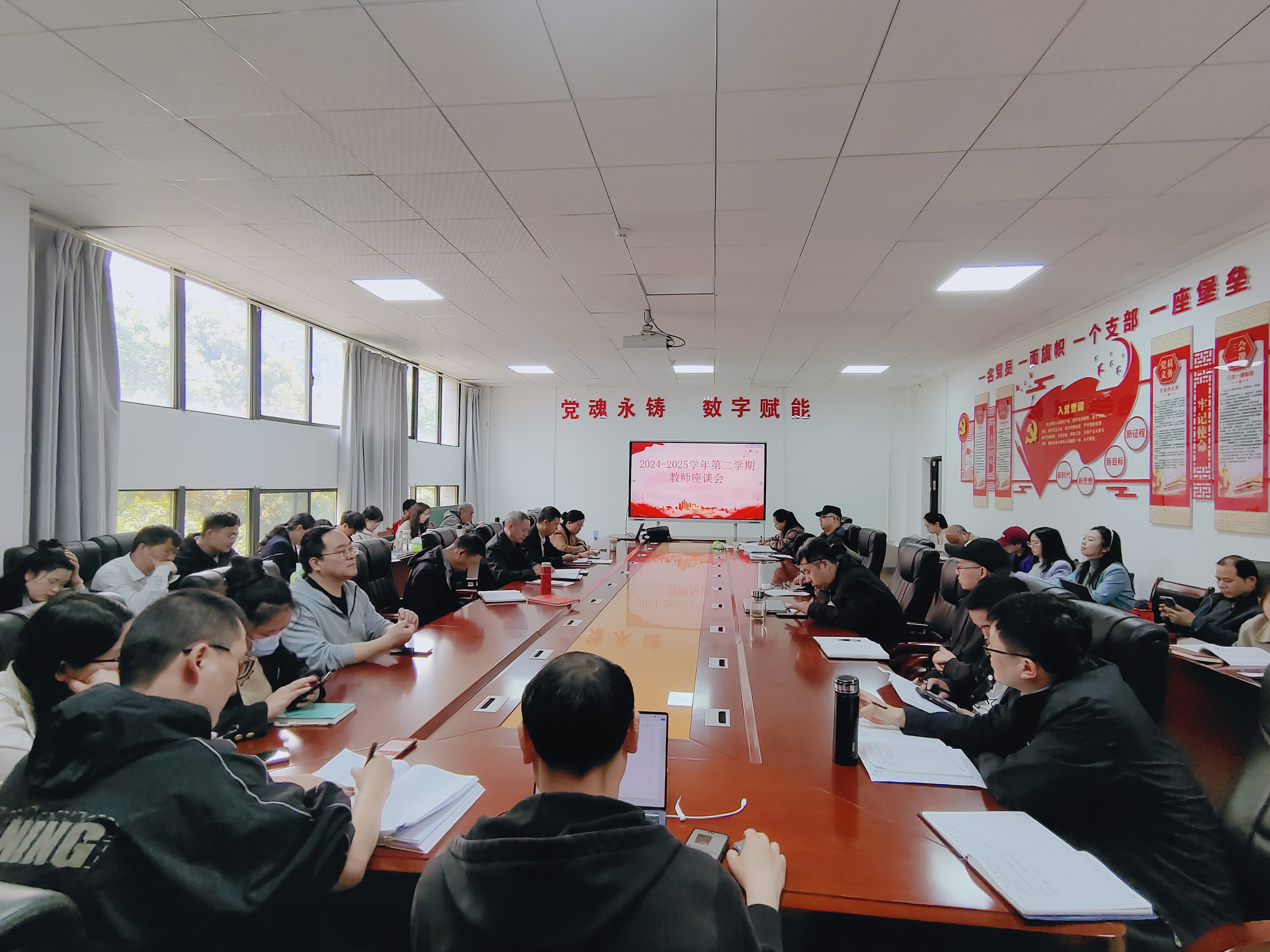4月25日,我院在智学楼二楼会议室组织全院教职工召开了2024-2025学年第二学期教师座谈会。会议由学院党委委员、副院长英锋主持,学院党委书记吕选周,党委副书记、院长秦鹏,党委副书记、纪委书记葛文卿出席了会议。