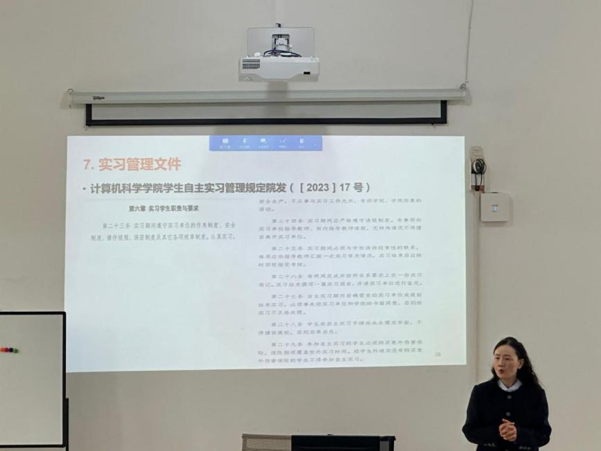 石云强调,实习是将理论知识与实践相结合的关键环节,通过实习,同学们能够深入了解行业实际需求,提升自身专业技能和综合素质,为今后顺利步入职场打下坚实基础。她还对实习时间安排、实习任务内容以及实习报告的撰写规范等提出了具体要求,希望同学们务必严格按照要求完成各项实习任务,保证实习质量。