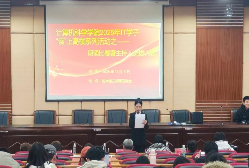 为了强化工科学子人文素养,11月11日,计算机科学学院“IT学子‘读’上高楼”朗诵比赛暨主持人选拔赛在智学楼三楼朝阳讲堂顺利举行,本次赛事由学院团委主办,易班学生工作站承办。