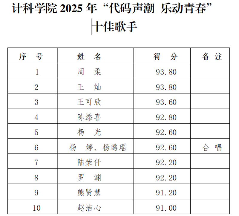 经过激烈角逐,周柔、王灿等同学脱颖而出,成为学院2025年十佳歌手。