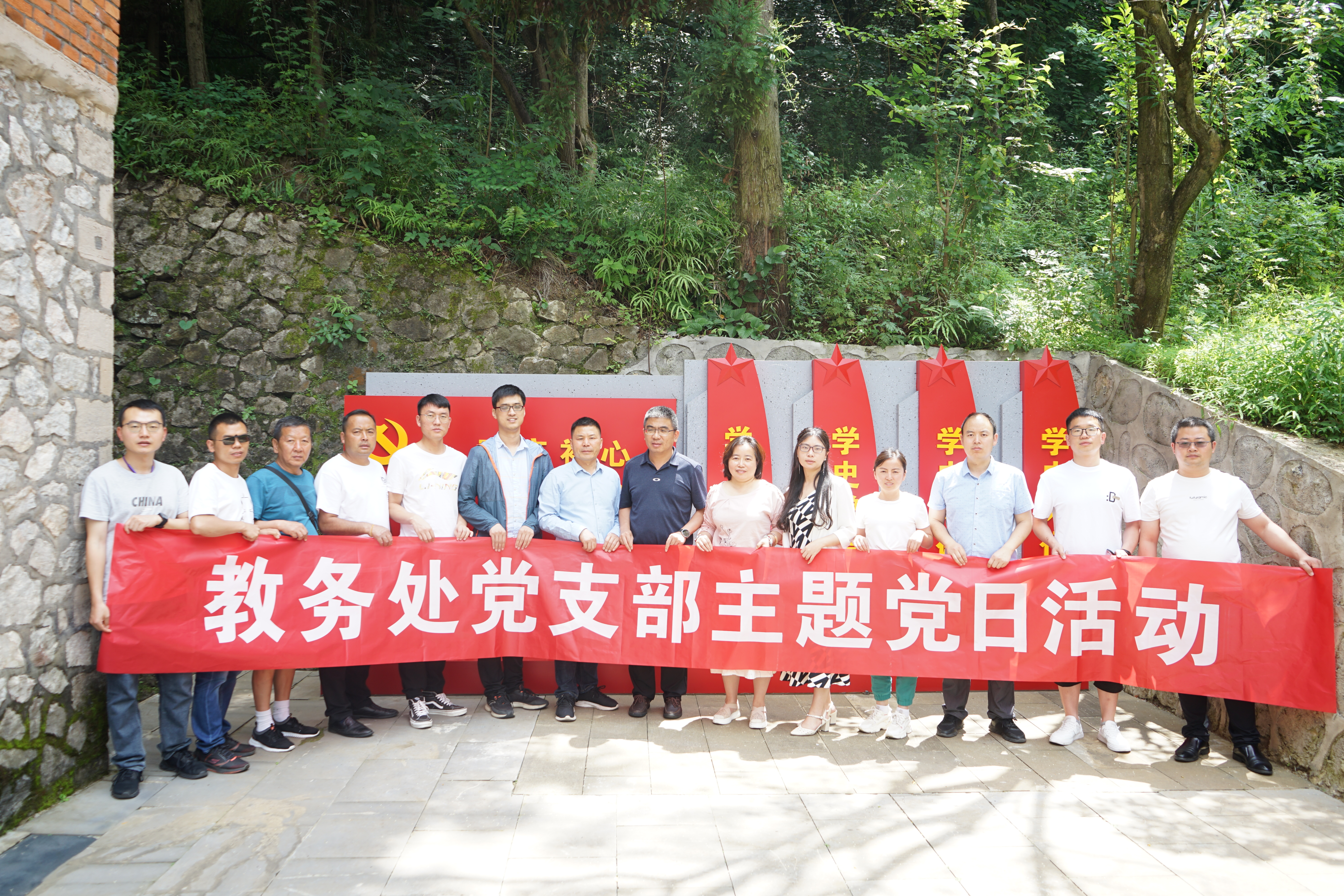 教务处党支部全体党员前往学校红色教育基地,开展党史红色教育。达到目的地后,教务处党支部书记张龙带领大家学习党史,他强调作为新时代的中国共产党党员,我们要做到“温故而知新”,把学习作为终身的“课题”,除了手脚上要掌握过硬的“本领”,思想上也要全副武装,掌握党史这本“秘籍”;要牢记“学而不思则罔,思而不学则殆”,要在党史学习教育过程中,做到边学边思考;要切记“纸上得来终觉浅,绝知此事要躬行”,要及时转化党史学习教育成果,把党史学习教育作为打扫自己“思想灰尘”的手段,坚定理想信念。