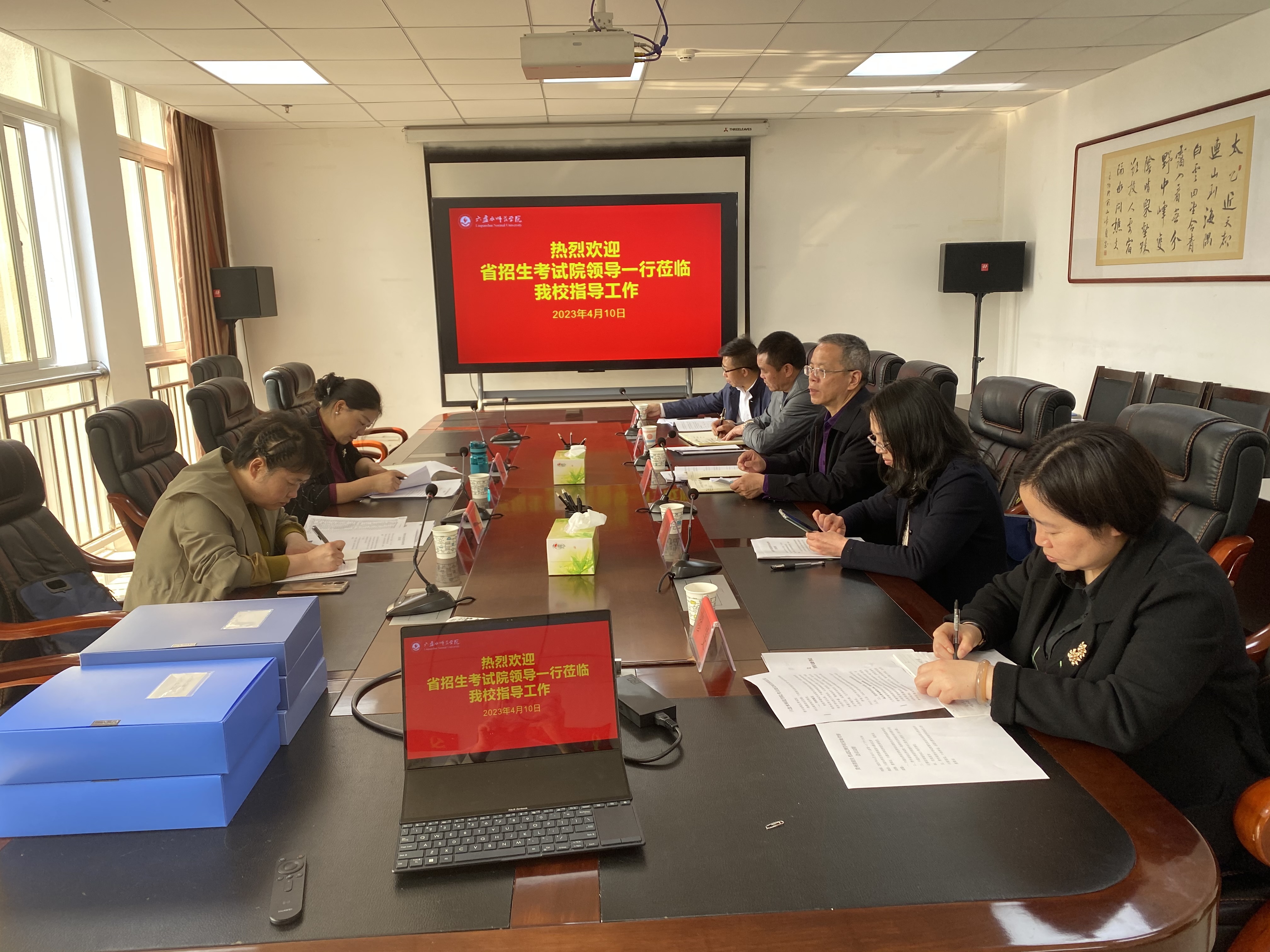 4月10日下午,省招生考试院社会考试处处长曹宝杰、一级调研员胡杨一行到学校调研指导国家教育考试工作,学校党委委员副校长黄保红、教务处、外国语学院、计算机科学学院、保卫处有关负责人全程陪同对bat365考点全国大学英语四、六级笔试和口语考试,全国计算机等级考试标准化考场、保密室、监控室和候考室等相关建设进行实地考察并进行交流座谈。