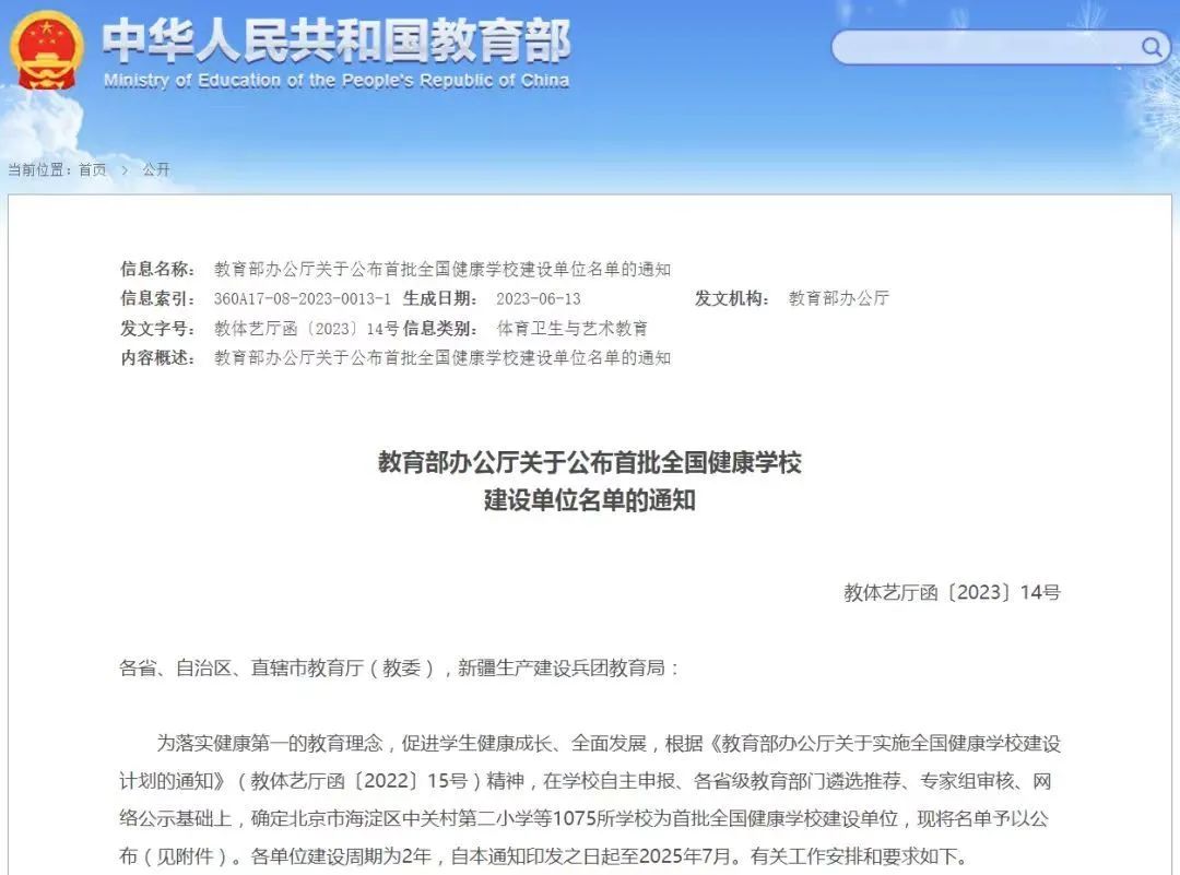 近日,教育部办公厅发布《关于公布首批全国健康学校建设单位名单的通知》,bat365成功入选,确定为首批全国健康学校建设单位。