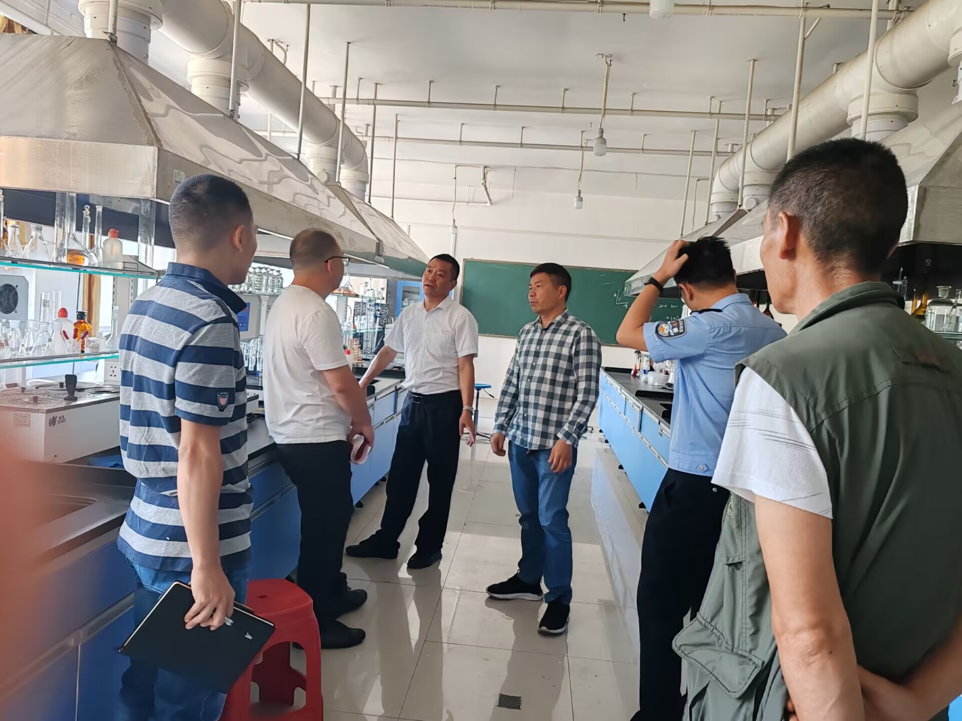 为进一步加强学校实验室安全管理工作,深入贯彻落实《教育部办公厅关于组织开展2023年度高等学校实验室安全检查工作的通知》和省教育厅相关工作要求,严格落实实验室安全工作责任,切实有效防范和消除各类实验室安全隐患,8月17-18日,教务处、保卫处、后勤服务中心等部门组成联合检查组深入各学院实验室,重点围绕消防安全、危险化学品安全及生物安全等方面对化材学院、生物科学与技术学院、矿业与机械学院、物电学院等实验室进行了“全过程、全要素、全覆盖”实地排查检查。