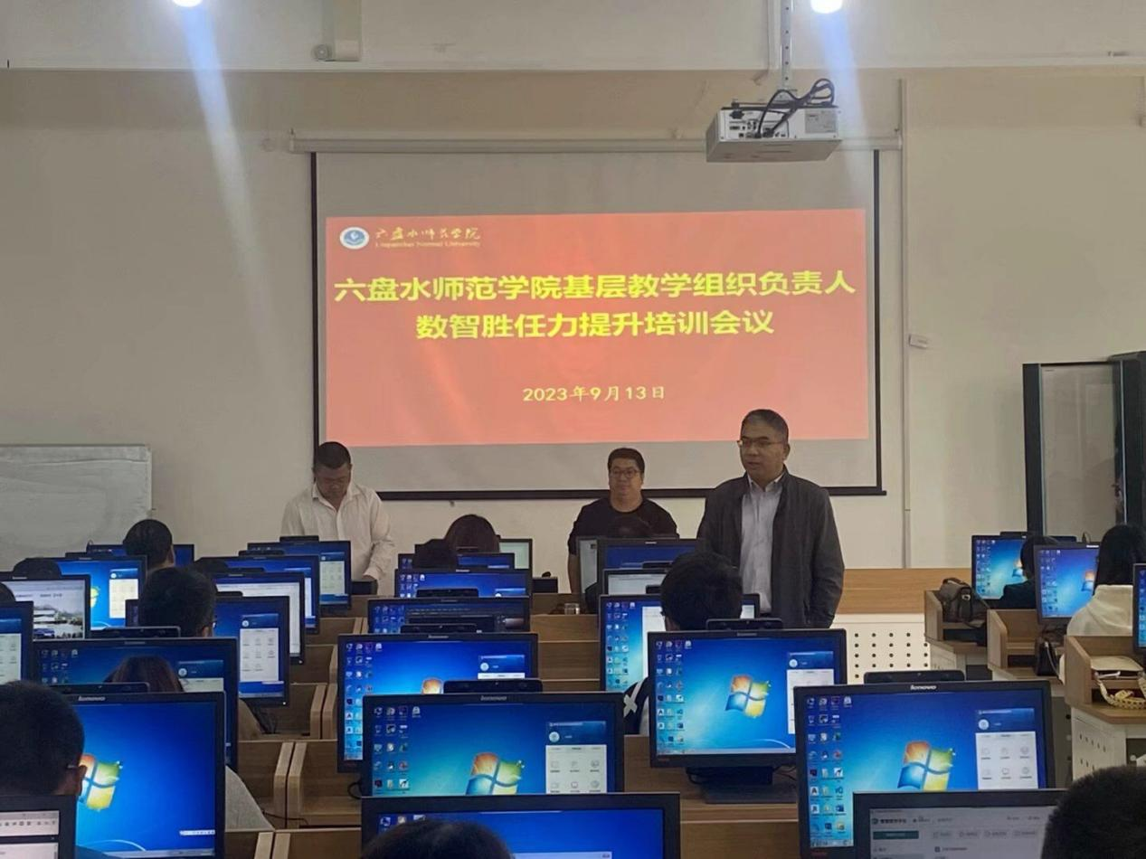 数智时代,技术正在更为深刻地影响着教育形态和教育管理,数智化不仅为大学教育、学习带来了便利,还逐渐成为教育者必备的技能。为了主动适应教育数字化工作要求,积极开展数字化教学模式的探索和实践,推动教育教学方式的变革与创新,全面提升基层教学组织负责人的数智胜任力。9月13日下午,学校在智学楼12机房举行基层教学组织负责人数智胜任力提升培训会。会议由教务处副处长代稳主持,教务处处长张龙、各学院分管教学院长,教学科研管理科科长、基层教学组织负责人及教务处相关人员参加本次会议。