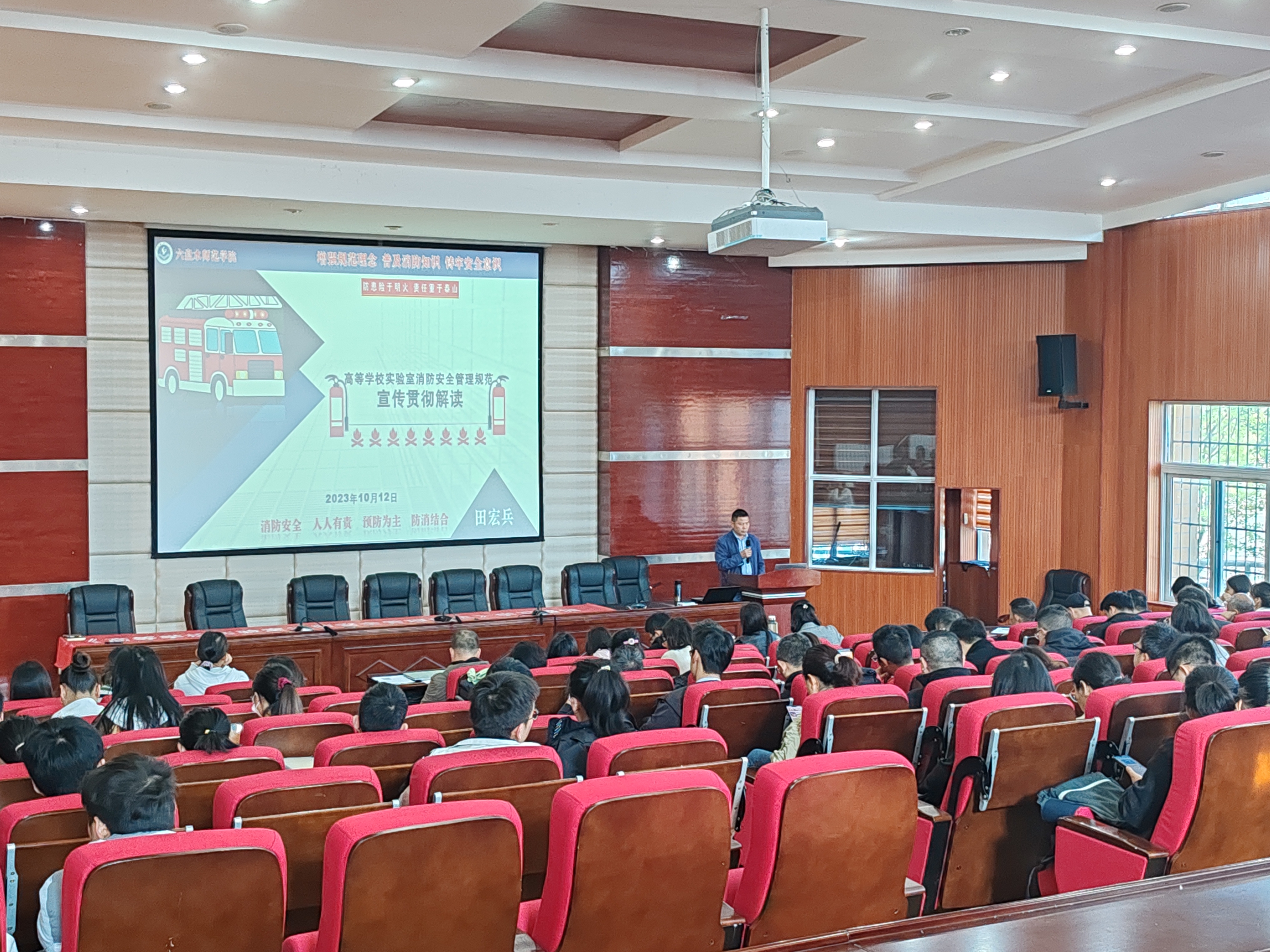 教务处副处长田宏兵从多个方面对《高等学校实验室消防安全管理规范》进行解读,结合观看《学校火灾警示教育片》加强实验室消防安全重要性的意识。通过学习与会人员对实验室消防安全管理的总体要求、消防安全责任、消防安全制度和管理、消防安全措施、灭火和应急疏散预案编制和演练、火灾事故处置与善后、及日常消防安全管理等方面有了全面系统的了解掌握。