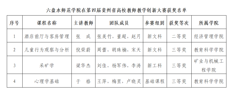 近日,第四届贵州省高校教师教学创新大赛获奖名单公布,经过激烈角逐,bat3654名教师课程团队获二等奖1项、三等奖3项,学校荣获优秀组织奖。