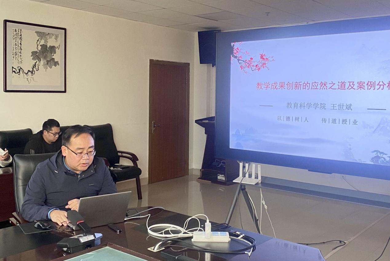随后,教育科学学院副院长王世斌博士以“教学成果创新的应然之道及案例分析”为主题,深入探讨了教学成果创新的本质内涵与实现路径,并通过一系列成功的案例分析,生动展示了如何将创新理念转化为具体可操作的教学实践,为教师们提供了宝贵的借鉴和启示。