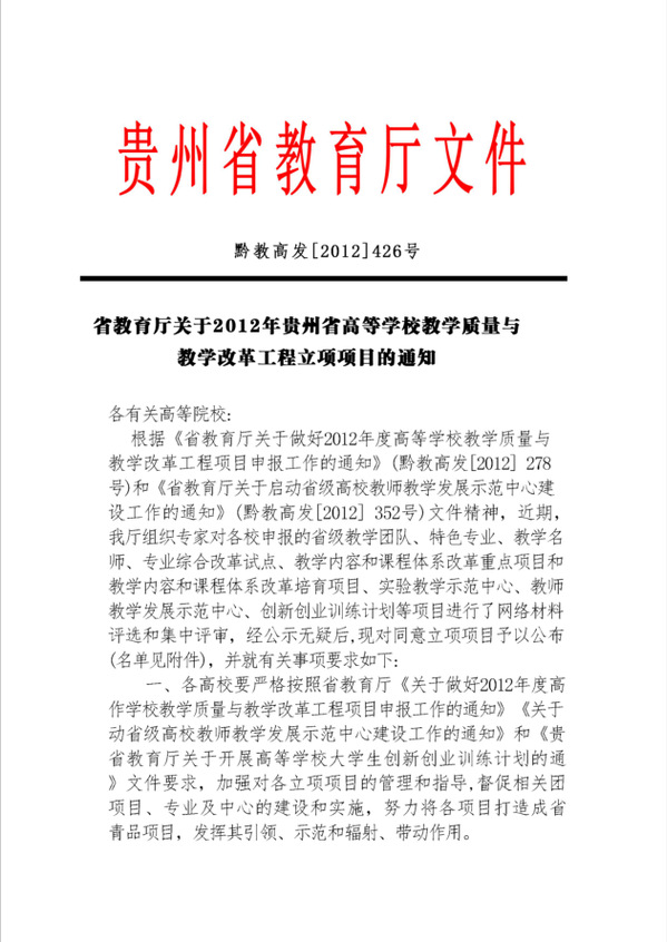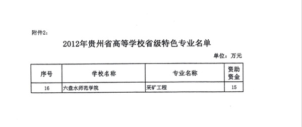 贵州省高等学校采矿工程特色专业,贵州省教育厅,2012