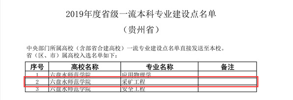 贵州省采矿工程一流本科专业建设点,贵州省教育厅,2020