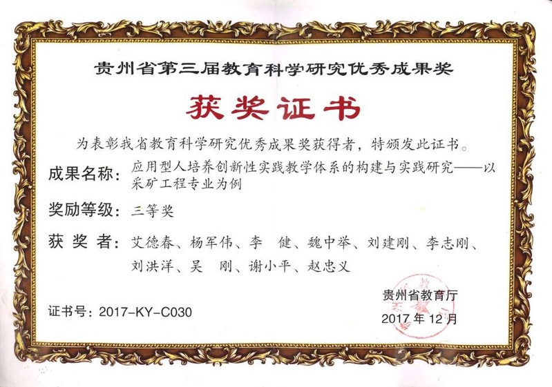 贵州省教育科学研究优秀成果三等奖,贵州省教育厅,2017
