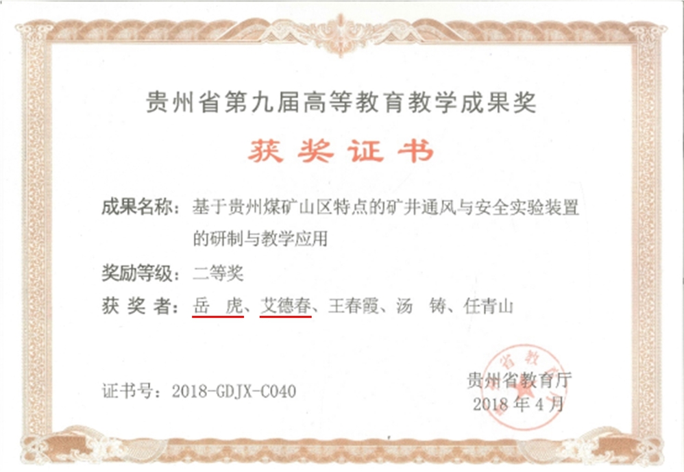 贵州省教学成果二等奖,贵州省教育厅,2018
