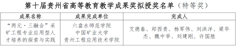 第十届贵州省高等教育教学成果特等奖