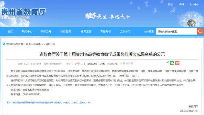 贵州省教学成果特等奖,贵州省教育厅,2022