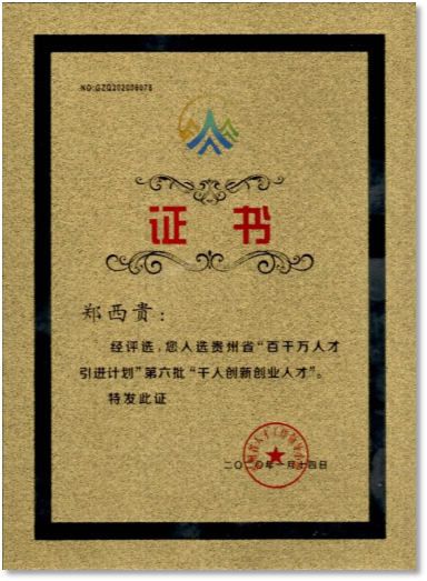 贵州省第六批“千人创新创业人才”,2020