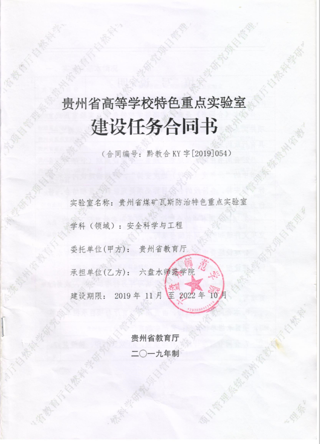 贵州省煤矿瓦斯防治特色重点实验室,贵州省教育厅,2019