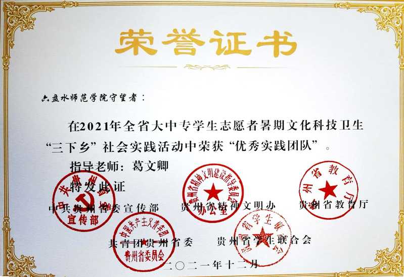 2021年全省大中专学生志愿者暑期文化科技卫生“三下乡”社会实践活动“优秀实践团队”