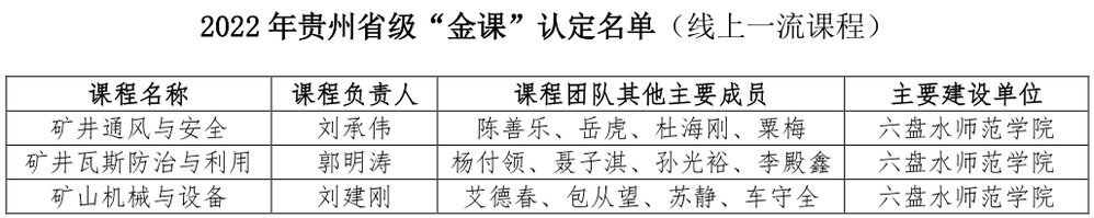贵州省线上一流课程3门,矿井通风与安全等,主持