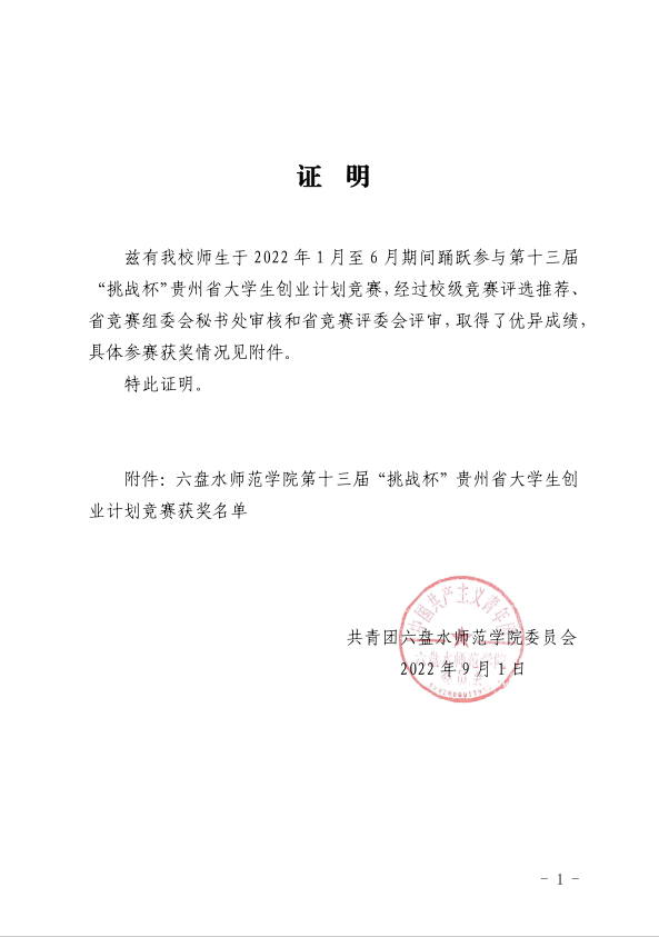 第十三届“挑战杯”贵州省大学生创业计划竞赛二等奖
