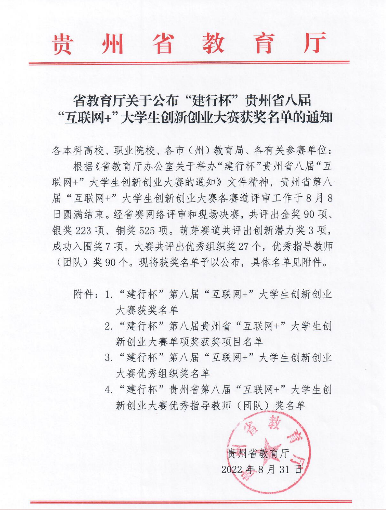 “建行杯”贵州省第八届“互联网+”大学生创新创业大赛金奖