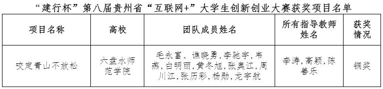 “建行杯”贵州省第八届“互联网+”大学生创新创业大赛铜奖