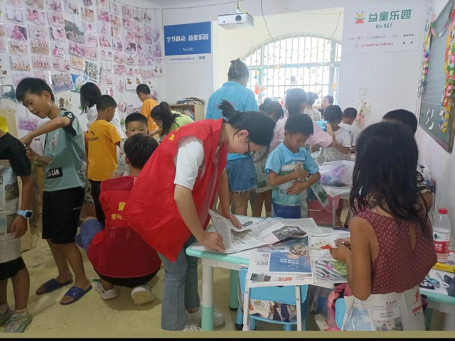 孩子们制作环保服装现场