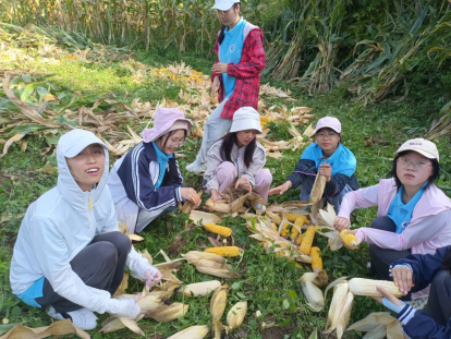 帮助留守儿童家掰玉米