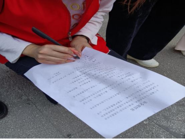 下午2点志愿者们准时到达钟山社区。活动负责人与钟山社区工作人员交接任务后,安排志愿者们进入社区打扫居民楼道。活动正式开展前,活动负责人宣读安全责任书,叮嘱志愿者们保证自身安全。志愿者们积极响应,服从活动安排,签署安全责任书。