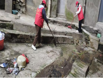 活动正式开展,活动负责人将25名志愿者分成两队。一队12人,负责清理负一楼场地和一单元楼道。二队13人负责打扫二至五单元楼道卫生。