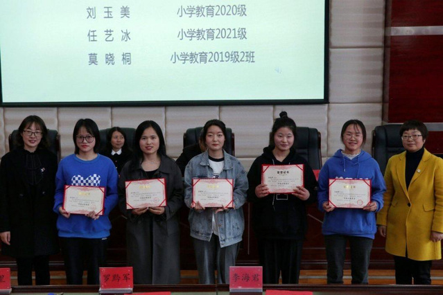 为鼓励先进,传承榜样力量,营造良好的教书育人氛围,推动学院高质量发展,3月23日下午,教育科学学院在博学楼117会议室开展2021-2022学年度学风表彰大会暨学院奖、“璀璨之星”颁奖仪式。学院党委书记卢爱华、院长赵碧玫、党委副书记邓薇、副院长刘兴荣出席,各系部科室负责人、教师代表、辅导员、班主任、获奖代表、学生代表参加,颁奖仪式由学生科科长李丹主持。
