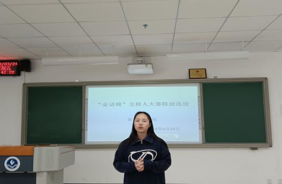 为培养有理想、敢担当、能吃苦、肯奋斗的新时代好青年,彰显新时代青年人风采,营造高雅的校园文化氛围,积极助力学校“三个两”素质提升计划和“六个明湖”建设,展示教育科学学院学子积极向上的青春活力,3月24日,教育科学学院“金话筒”主持人大赛选拔赛在奥学楼209教室举办,大赛的选拔流程分为自我介绍,连词成文,绕口令即兴朗读。