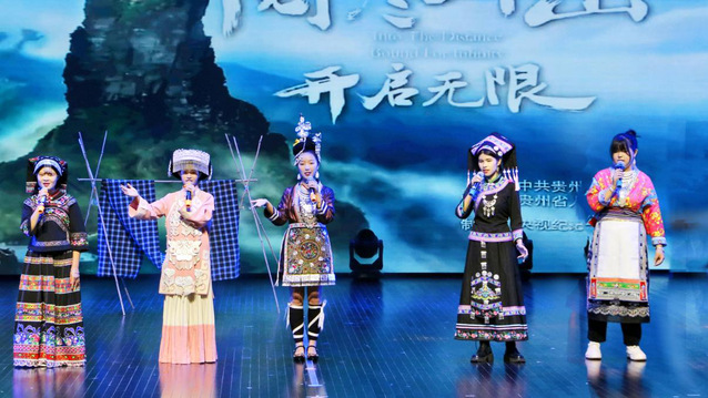 五位身着盛装的少数民族姑娘用自己本民族语言共同演唱《我在贵州等你》,一首独特且动听的民歌唱响了本次活动的集结号。