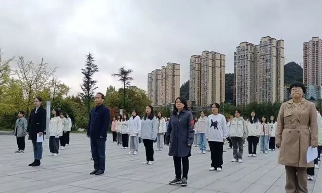 10月8日上午7:30分,教育科学学院在知行广场举行升旗仪式。院领导、各系部主任、全体辅导员、全体师生党员以及2023级全体学生参加本次升旗仪式。