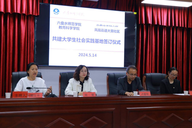 为进一步深化校地合作,搭建青年学生基层实践锻炼平台,引导大学生走进社区基层、了解社会实际、服务人民群众、增强时代责任,持续发挥党团员青年的先进模范作用,5月14日下午,教育科学学院与钟山区凤凰街道大营社区举行大学生社会实践基地签约授牌仪式。校团委书记杨毅,教育科学学院党委书记卢爱华、党委副书记邓薇、学生科刘宝舜,大营社区党支部书记、居委主任邓文平及社区工作人员参加签约挂牌仪式。本次仪式由邓文平主持。