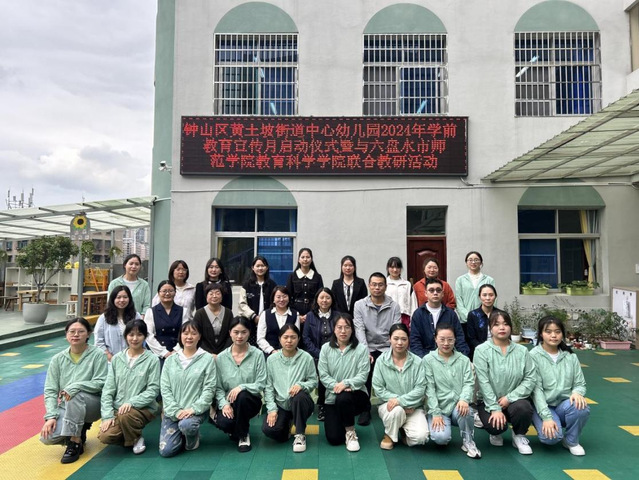 6月14日下午,我院院长赵碧玫、副院长刘兴荣及学前教育系全体教师到钟山区黄土坡街道中心幼儿园开展联合教研活动。