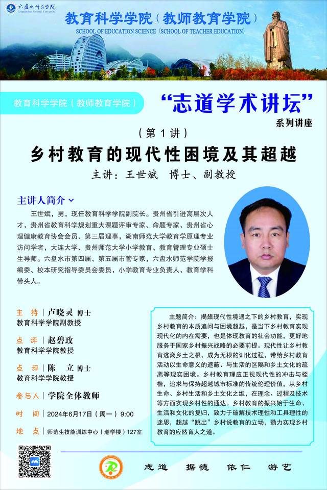 【预告】教育科学学院“志道学术讲坛”系列讲座第1讲------乡村教育的现代性困境及其超越