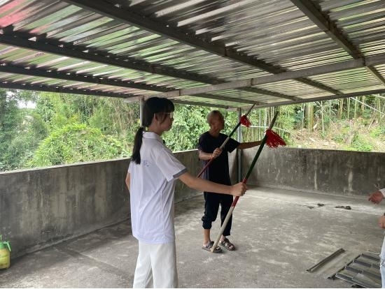 7月13日早上,团队成员到王家院村开展“用地戏作伴,舞精彩人生”的活动。团队成员先向小朋友们讲述了本次活动的流程,再向小朋友们播放幼儿歌曲“熊出没”,用普通话教授小朋友们歌词,激发小朋友们对这首歌的兴趣,为第二天的舞蹈教学做铺垫。下午,通过邀请当地学习过地戏的小朋友现场展示地戏表演,团队成员和小朋友们共同学习地戏表演。通过亲身参与地戏表演的学习,激起了小朋友们对非遗文化的重视和热爱,也让团队成员深刻地感受到自己的责任和使命,更加积极地投入到非遗文化保护和传承的工作中去。