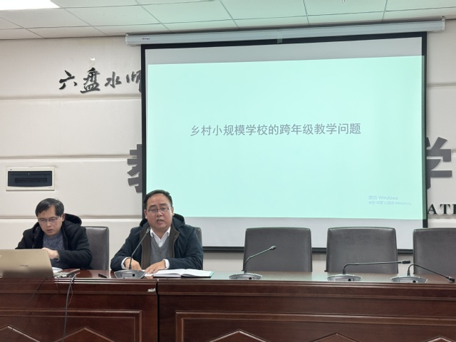 2024年12月11日15:00,学院志道学术讲坛第3讲在奥学楼401会议室正式开讲。本次讲坛邀请教育科学学院小学教育系主任陈立博士作《乡村小规模学校的跨年级教学问题》的专题讲座,讲座由教育学科团队胡小平博士主持,学科团队教师、部分学生参与。论坛特邀教育科学学院原院长赵碧玫教授、副院长王世斌博士两位专家作点评。