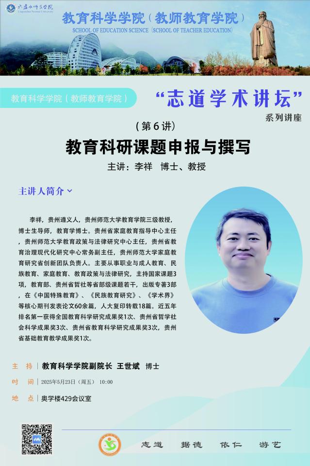 【预告】教育科学学院“志道学术讲坛”系列讲座第6讲------教育科研课题申报与撰写