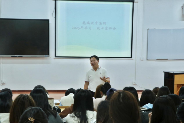 为帮助我院毕业生更好地择业就业,6月9日下午四点半,我院联合深圳乾瑞教育集团在乐学楼三楼阶梯教室召开2025年实习、就业宣讲会。学前教育2022级、学前教育2024级专升本、学前教育2021级全体学生参会,乾瑞教育集团总经理刘宗福到场宣讲。