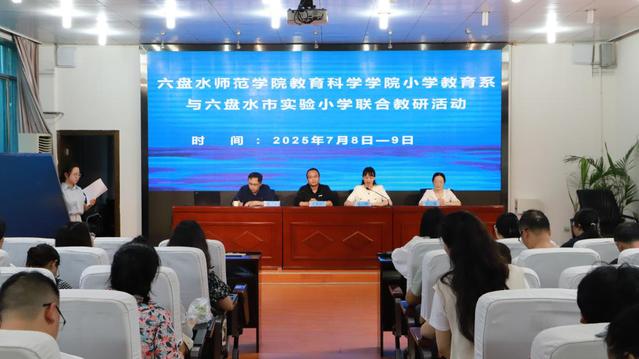 为加强高等师范院校与地方小学的合作交流,搭建深入基础教育教学一线开展研究的平台,同时满足小学教师的教育教学研究需求,7月8日,bat365在线中国登录入口教育科学学院小学教育系与六盘水市实验小学开展联合教研活动。我院党委书记卢爱华、副院长王世斌、小学教育系主任陈立、教师教育教学部主任于格及小学教育系全体教师,与六盘水市实验小学校长袁野、副校长陈龙军及全体教师共同参与了此次活动。