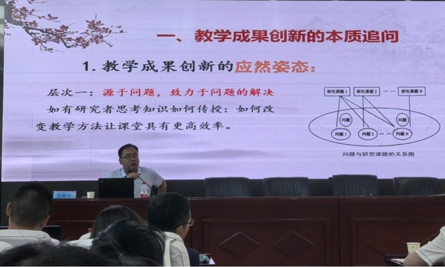 下午,王世斌副院长围绕《教学成果创新的应然之道与实践路径》展开分享。他从教育的本质“对话与追问”切入,探讨了教学成果创新的理论依据,并结合实际案例,详细讲解了成果创新的实践路径与选题凝练方法,强调教学研究应立足实际需求,注重成果的转化与应用,为教师的教学改革与创新提供了宝贵启示。