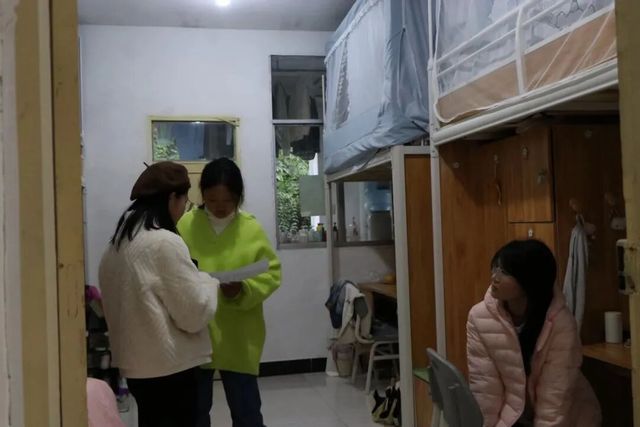 领导们向宿管阿姨了解基本情况后,对学生寝室逐个进行检查,仔细查看了同学们的住宿条件,询问同学们的日常起居,叮嘱大家务必提高警惕,注意用电安全。一句句关切的话语,让同学们感受到了温暖。