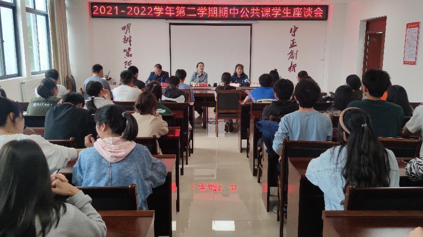 5月7日下午2:30,马克思主义学院2021—2022学年第二学期思想政治理论课期中学生座谈会在奥学楼1008会议室举行。参加座谈会的有学院院长伍友琴教授、副院长张绪清教授、教学督导组朱亭烨副教授、教学科研管理科姚自文、张译老师,以及各二级学院的学生代表60余人。会议由张绪清主持。
