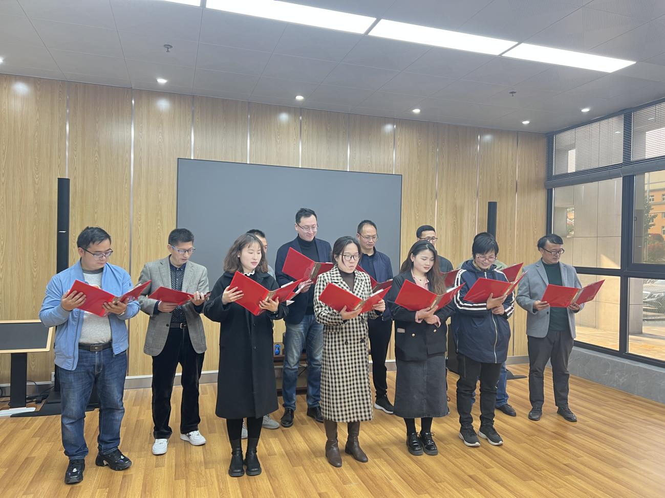 表彰会后,表演活动拉开序幕,行政管理队演唱《新时代马院教师之歌》,此曲歌词由伍友琴改编,展现全院教职工热情似火的精神风貌;思想政治教育系教师朗诵《我爱上班》,以轻松幽默的方式表达教师爱岗敬业、无私奉献的精神;马克思主义理论教学部田有广独唱《风雨彩虹,铿锵玫瑰》,表达了对学院女教师披荆斩棘、永远年轻漂亮、工作生活顺心如意的美好祝愿;学生党支部朗诵《永远跟党走》,坚定了马克思主义学院青年学子永远跟党走的信心和决心;最后,教工党支部党员高唱《保卫黄河》,将活动氛围推向了高潮。