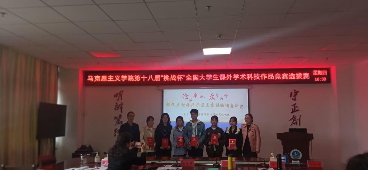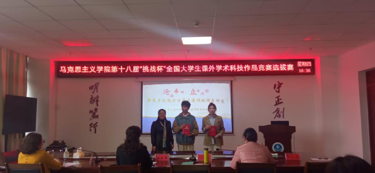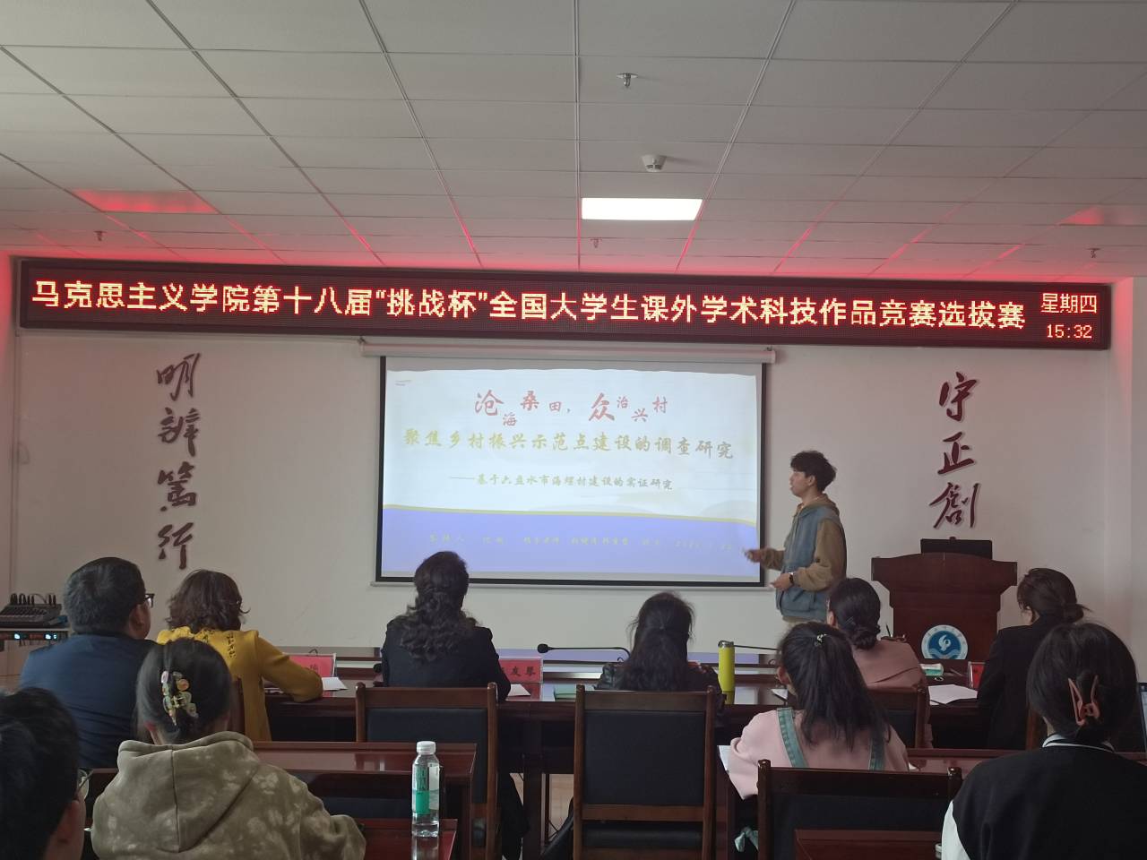 为进一步推进学院创新创业发展,3月23日下午在奥学楼A1008会议室,马克思主义学院开展第十八届“挑战杯”全国大学生课外学术科技作品竞赛院内选拔赛。学院党委书记何天栩、院长伍友琴教授、党委副书记蔡娟、教研科科长黄燕、思想政治教育系主任刘春燕作为评委参加此活动。活动由学院团委学生兼职副书记付敏主持。