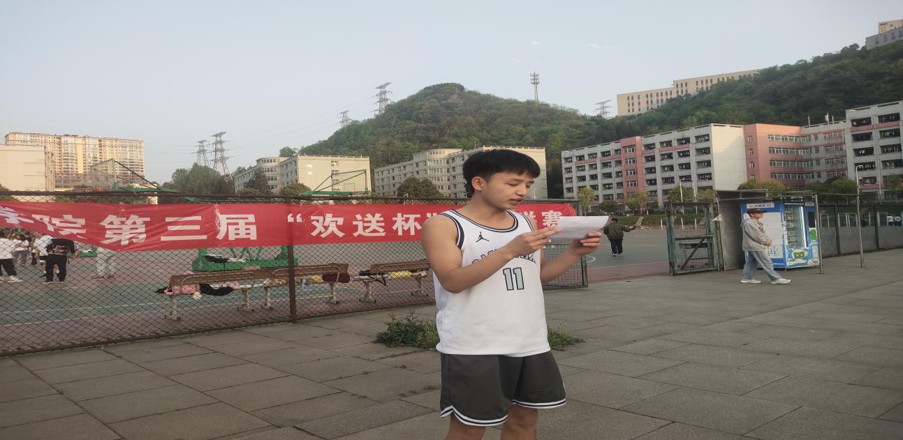 在开幕式上,何天栩书记致辞,伍友琴院长宣布比赛开幕,全院学子激情满满,期待着篮球赛的开始。