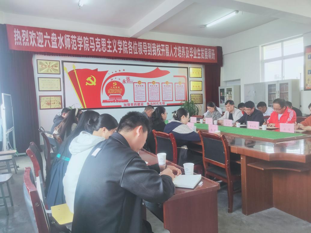 按照《教育部关于做好2023届全国普通高校毕业生就业创业工作的通知》的文件精神,全面落实高校毕业生就业创业工作,千方百计促进我院毕业生多渠道就业创业。4月25日,学院党委书记何天栩、副书记蔡娟、思想政治教育系肖永国等一行到盘州兴成学校、沙陀中学、盘州铁路学校、富源创新学校开展“访企拓岗”。